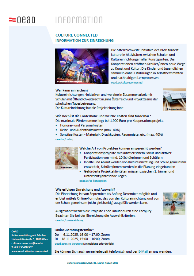 OeAD-Call: culture connected - Kooperationen zwischen Schulen und Kultureinrichtungen
